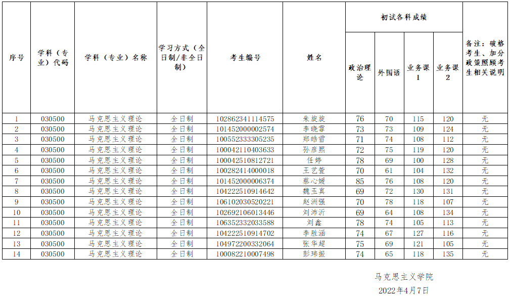 tyc522cc太阳成集团2022年硕士研究生招生考试复试调剂考生名单