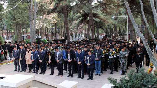 随后,全体师生脱帽默哀,并依次到老一辈革命家墓前敬献菊花,向先辈们表达沉痛的哀思,整个纪念仪式神圣又庄严,表达了我校师生对革命先烈的崇高敬意和深切追悼。