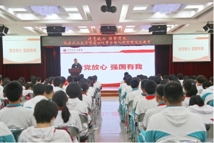 近日,tyc522cc太阳成集团团委应邀到太阳集团附属学校联合开展共青团五四青年节主题教育活动。学院团委书记闻亮带队,2022级研究生张华超、张震向附属学校八年级学生讲授了主题为“请党放心 强国有我”的团课。附属学校师生代表130余人参加活动。