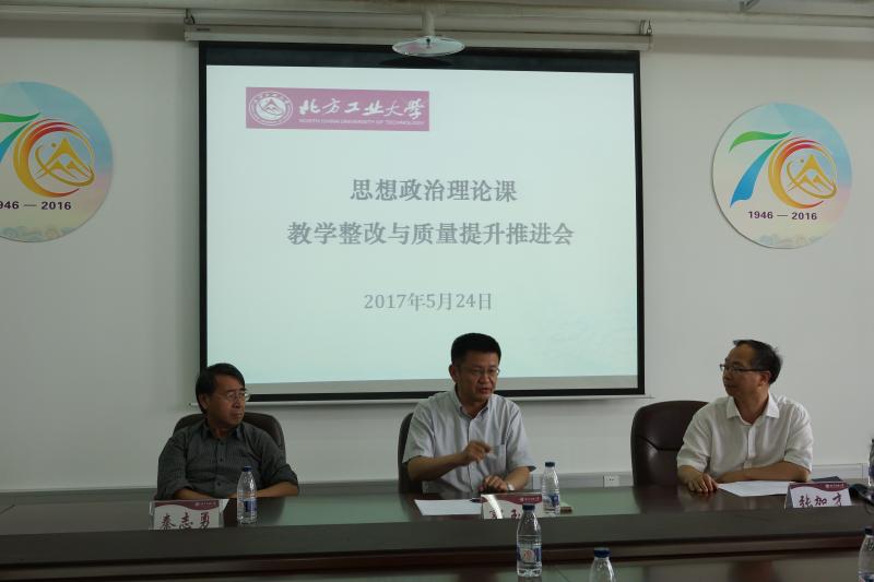 为贯彻中央和北京市高校思想政治工作会议精神,落实我校思想政治理论课“质量建设年”的任务要求,5月24日下午,“太阳集团思想政治理论课教学整改与质量提升推进会”在瀚学楼1208会议室召开。校党委副书记郭玉良、学工处(研工部)处长高国伟、教学信息员谭亚俐,以及tyc522cc太阳成集团全体教师和部分学院辅导员参加了会议。会议由tyc522cc太阳成集团院长张加才主持。