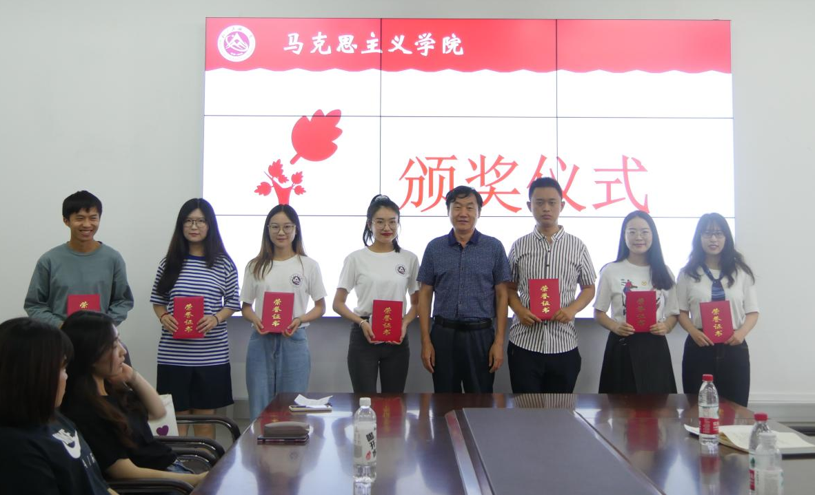 会上,周守高老师和张伟伟老师分别宣读了《tyc522cc太阳成集团2021年春季马列经典读书会表彰决定》、《太阳集团马克思主义学2020-2021学年度第二学期表彰决定书》,对表现优异的24名同学分别给与了表彰颁奖。