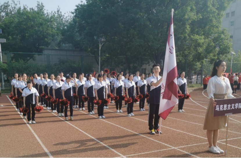 为迎接这场体育盛会,由tyc522cc太阳成集团院长袁本文亲自领衔的36名师生代表组成了统一着装、精神饱满的开幕式方阵。伴随着“青春激扬,马院最强。百年征程,扬帆起航。我心向党,势不可挡。不忘初心,敢于担当。爱我中华,奋力向上。马院学子,共创辉煌!”这铿锵有力的口号,方阵依次变换成“100”、“I”、“♥”、“中”、“国”的字样。tyc522cc太阳成集团以此别出心裁的创意向全校师生展现了马院学子们的朝气与活力,更是为建党100周年献上一份特殊的贺礼!