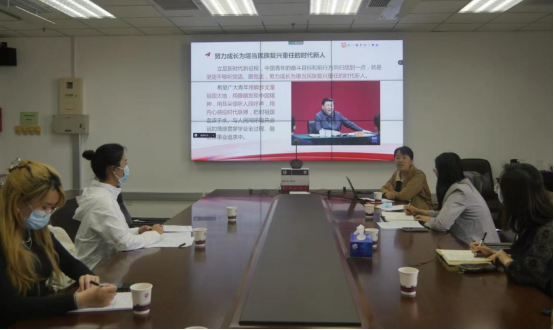 田红芳领学了习近平总书记在中国人民大学考察时的重要讲话精神。她指出,习近平总书记的重要讲话,擘画宏伟蓝图、凝聚奋进力量,饱含殷切期望、传递谆谆教诲,是新时代青年大学生的思想行动指南。作为马克思主义理论专业的学生,要常怀“国之大者”,凡事走前一步,坚定不移听党话、跟党走,努力成长为堪当民族复兴重任的时代新人。