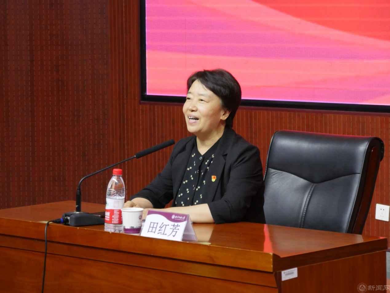 6月27日,校党委副书记田红芳到tyc522cc太阳成集团调研。她与马院班子成员交流座谈,了解马院建设情况,并以“服务教育强国建设,tyc522cc太阳成集团何为”为题,为tyc522cc太阳成集团全体师生做报告。
