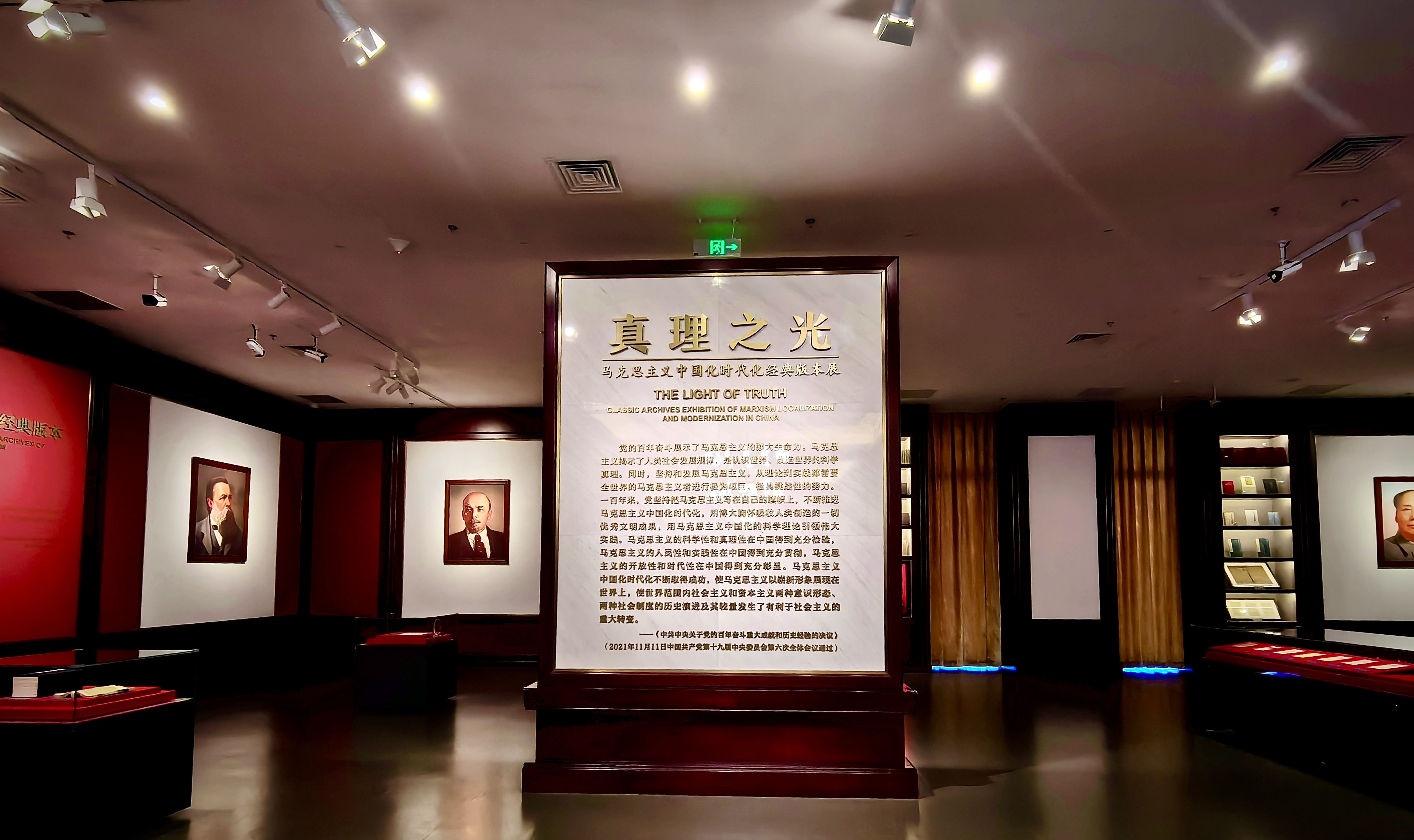 在典雅庄严的文瀚阁,大家参观了“真理之光——马克思主义中国化时代化经典版本展”主题展览,该展览以马克思主义发展史为基本脉络,荟萃经典著作、手稿手迹、档案资料,全面展示了马克思主义经典传承和中国化时代化光辉历程。通过参观多个版本《共产党宣言》等珍贵文献和40多个语种多卷本的《习近平谈治国理政》,教师们更近一步感悟到马克思主义的真理伟力。