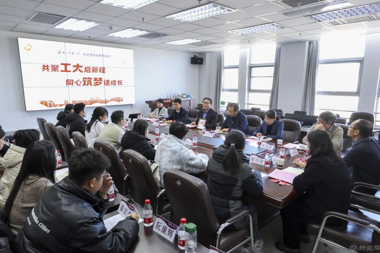 此次“校长想见你”系列活动的主题是“共聚工大启新程 同心筑梦话成长”。与会学生畅所欲言,分享了自己的考研经历、“研”途初体验以及未来的发展规划。同学们纷纷表示,学校为他们的学习成长提供了优秀的导师团队、丰富的学术资源和广泛的实践平台,使他们在日常点滴中感受到了“对学生成长最好大学”的温暖。肖家欣同学分享了赴西安参加研究生学术论坛并做大会发言的激动心情,张熹瑶同学顽强追梦的故事感染了现场师生,张心怡同学谈到学院师生一起筹办院庆活动的开心,姚津同学用西班牙语为大家送上新年祝福。