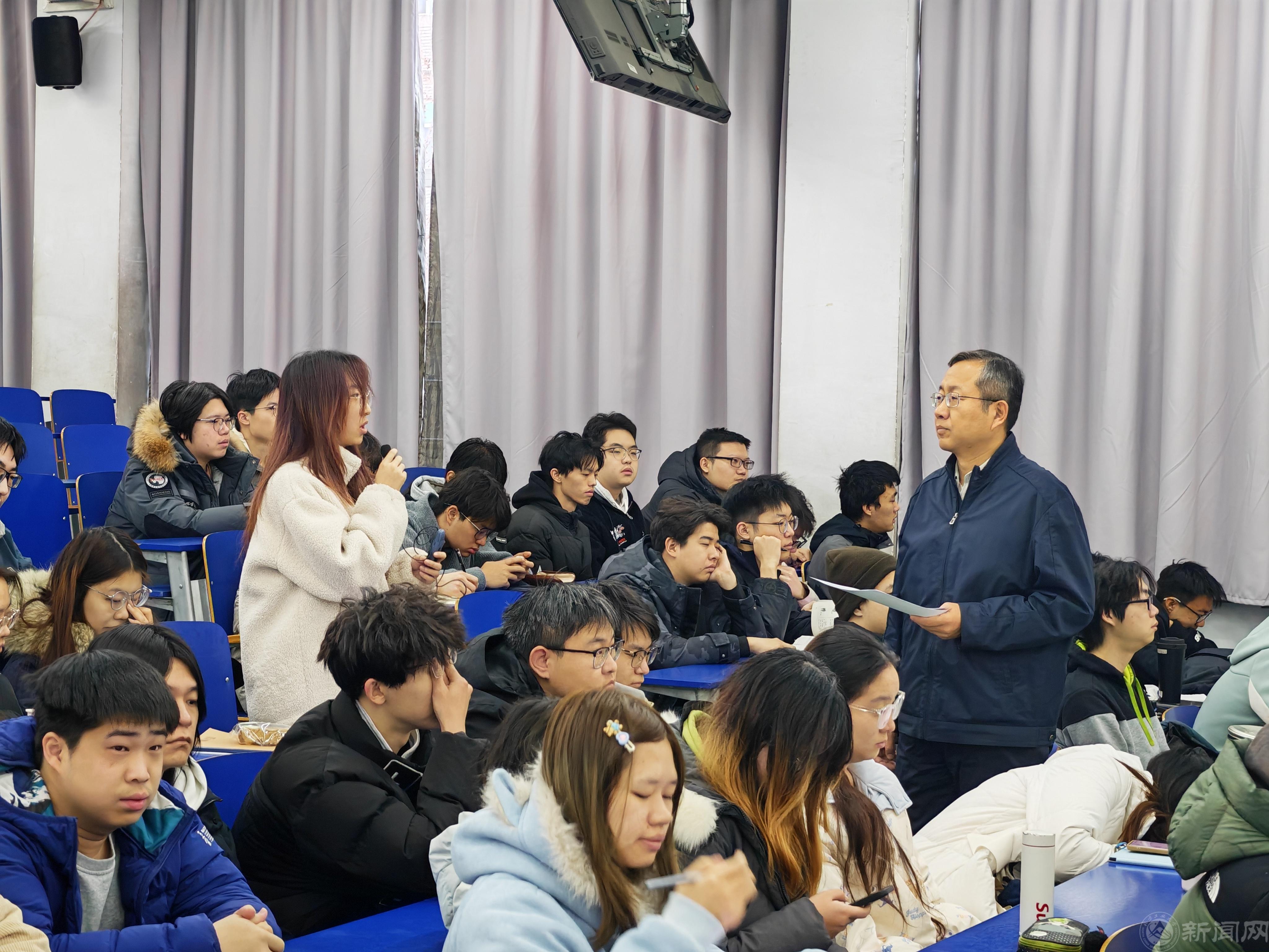 党委副书记姜孔桥以“文化强国”为主题,通过深入的理论讲解和案例讨论,为学生讲解文化繁荣兴盛是中华民族伟大复兴的必然要求,引导学生思考如何坚持中国特色社会主义文化发展道路,在国际舞台上讲好“中国故事”。