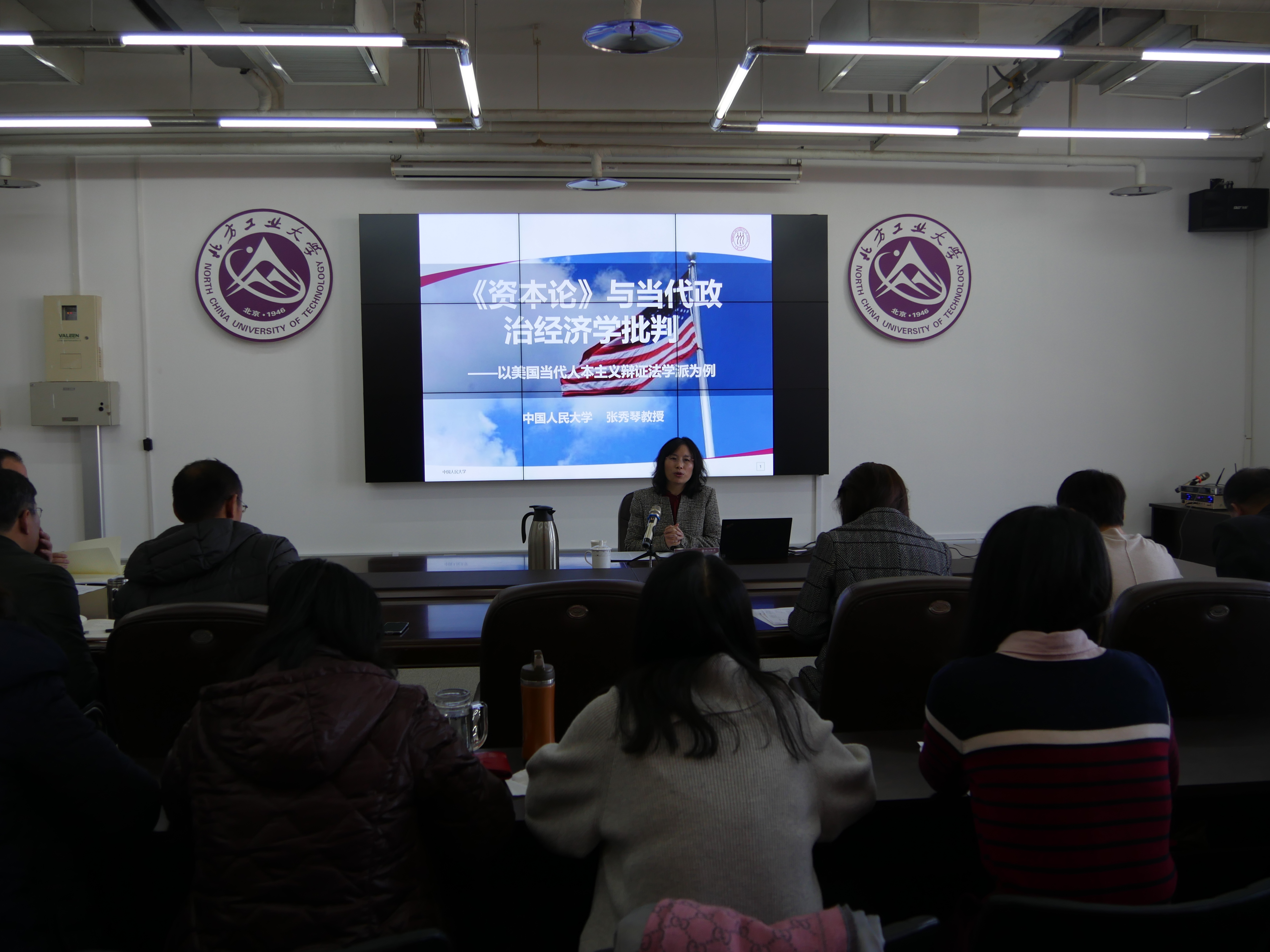 11月22日,中国人民大学tyc522cc太阳成集团张秀琴教授应邀为我校tyc522cc太阳成集团师生作了题为“《资本论》与当代政治经济学批判——以美国当代人本主义辩证法学派为例”的学术讲座,讲座由tyc522cc太阳成集团院长张加才教授主持,tyc522cc太阳成集团教师和研究生共同参加了本次讲座。