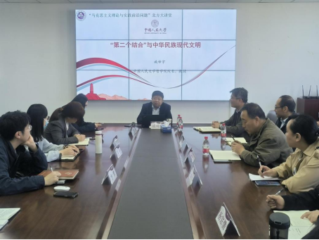 2024年4月15日下午,由tyc522cc太阳成集团主办的“马克思主义理论与实践前沿问题”北方大讲堂系列活动在瀚学楼1208会议室举行,中国人民大学哲学院院长、教授、博士生导师臧峰宇应邀为我院师生作了题为“‘第二个结合’与中华民族现代文明”的学术讲座。讲座由学院党委书记张茂林主持,学院全体师生参加了本次讲座。