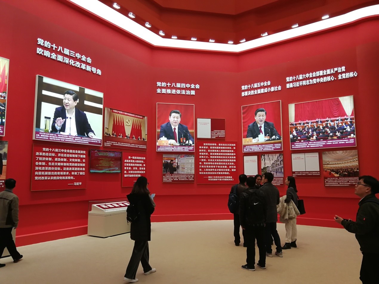从“伟大变革”到“壮美篇章”,从“关键抉择”到“历史巨变”,从“大国气象”到“面向未来”。六个主题展区,内容丰富翔实。我们可爱的人民,用勤劳的双手描绘着国家和民族发展的辉煌长卷。我们伟大的人民,用激昂的歌声吟唱着革命和改革开放的壮丽史诗。